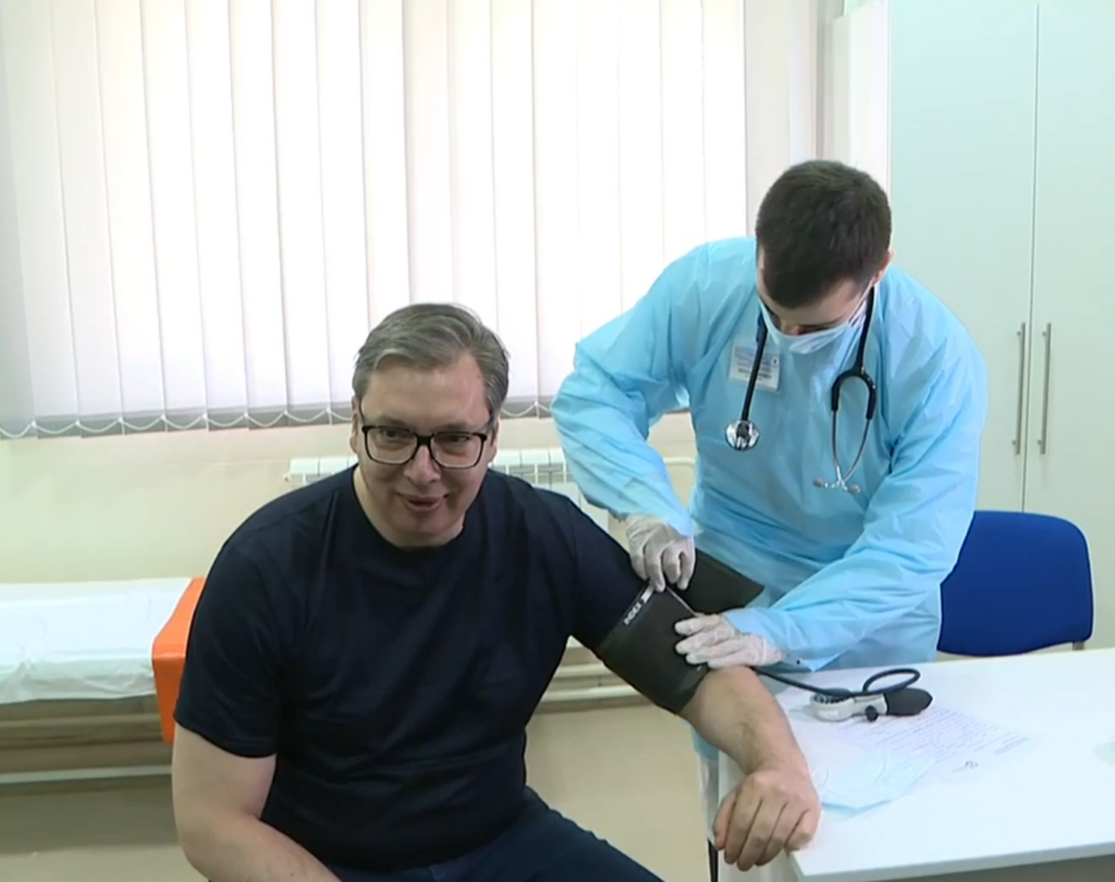 Predsednik je uoči vakcinacije poklonio cveće doktorki koja ga je dočekala u Domu zdravlja. Potom mu je izmeren pritisak.