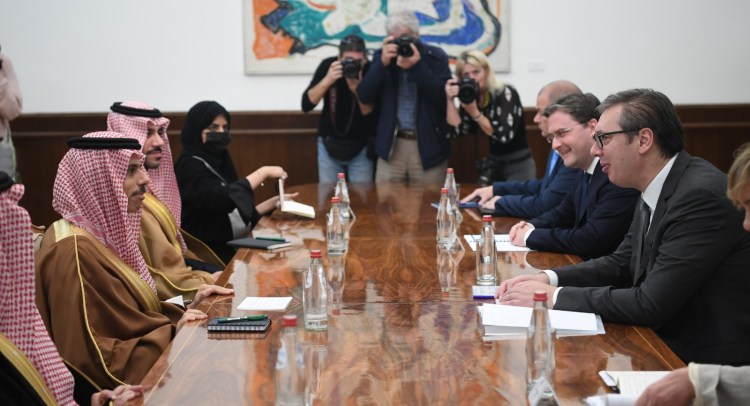 Predsednik Srbije Aleksandar Vučić sastao se danas sa ministrom spoljnih poslova Kraljevine Saudijske Arabije, princom Fejsalom bin Farhan al-Saudom, sa kojim je razgovarao o saradnji u oblasti odbrane, vojne industrije, energetike, a posebno u sferi obnovljivih izvora energije.